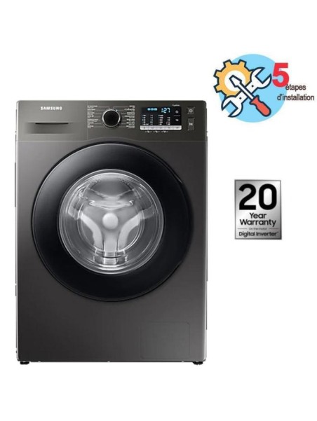 Lave Linge Frontal SAMSUNG - Capacité de lavage: 7 kg - Vitesse d'Essorage: 1200 tours/min - Classe Énergétique: A+++ - 14 programmes - Technologie Digital Inverter - EcoBubble™ - Lavage rapide 15 minutes - Type de tambour: 2nd Diamond - Sécurité enfants - Dimensions: 600 x 850 x 550 mm - Couleur: Silver - Garantie: 2 ans + 20 ans sur moteur