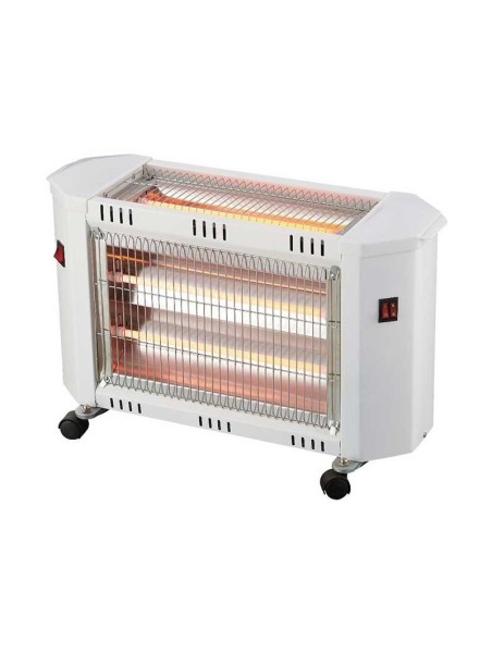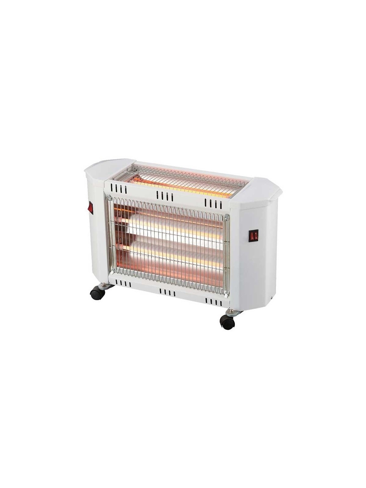 Chauffage Electrique Double Face - Puissance: 2500 W - 2 faces chauffantes - 3 Tubes Quartz - Roulettes de transport - Bouton Marche/Arrêt - Couleur Blanc - Garantie 1 an