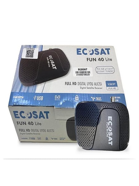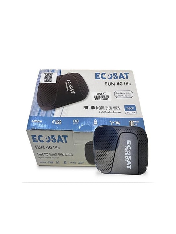 Récepteur ECOSAT FUN 40 Lite - Résolution: Full HD 1080p - Connectivité: Wifi - Connecteur: HDMI, USB - Compatible Avec Clé Wi-Fi - Couleur: Noir
