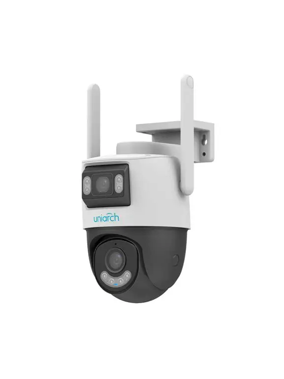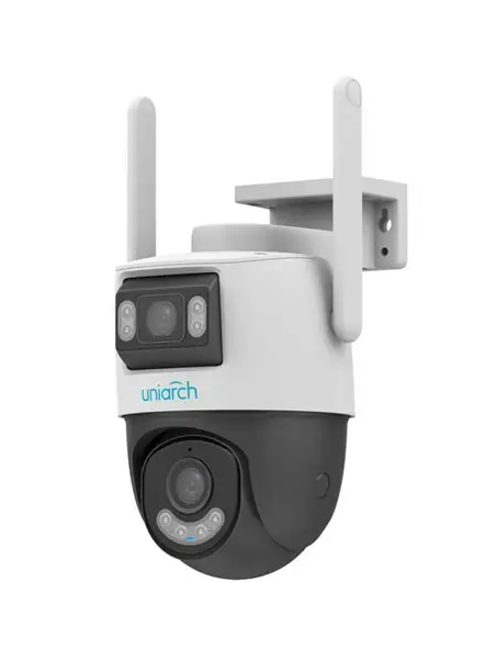 Caméra IP Wi-Fi Panda serie P Uniarch 3MP Double objectif: Fixe et PT (mobile) Détection des personnes et des véhicules Double éclairage intelligent: IR et lumière blanche Audio Bidirectionnel: Microphone et haut-parleur | IP66