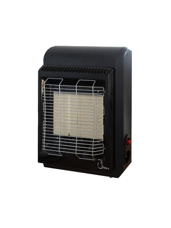 Radiateur Coala Gaz Naturel GN - 3x Niveaux de chauffages - Type d'allumage: Piézo poussoir - Controle par analyseur d'atmosphère - Puissance réglables: 1500W / 3000W / 4500W - Volume de chauffe jusqu'à 100m3 - Dimensions 520 x 440 x 130 mm - Poids 8.5KG - Garantie 1 an