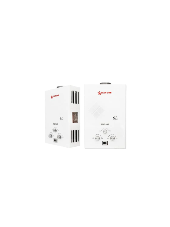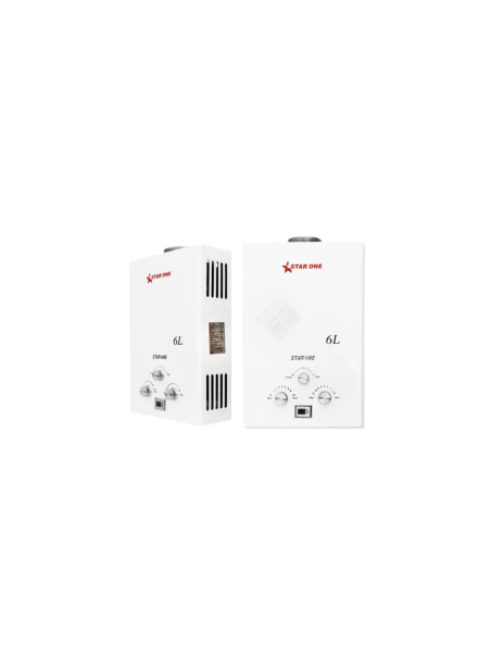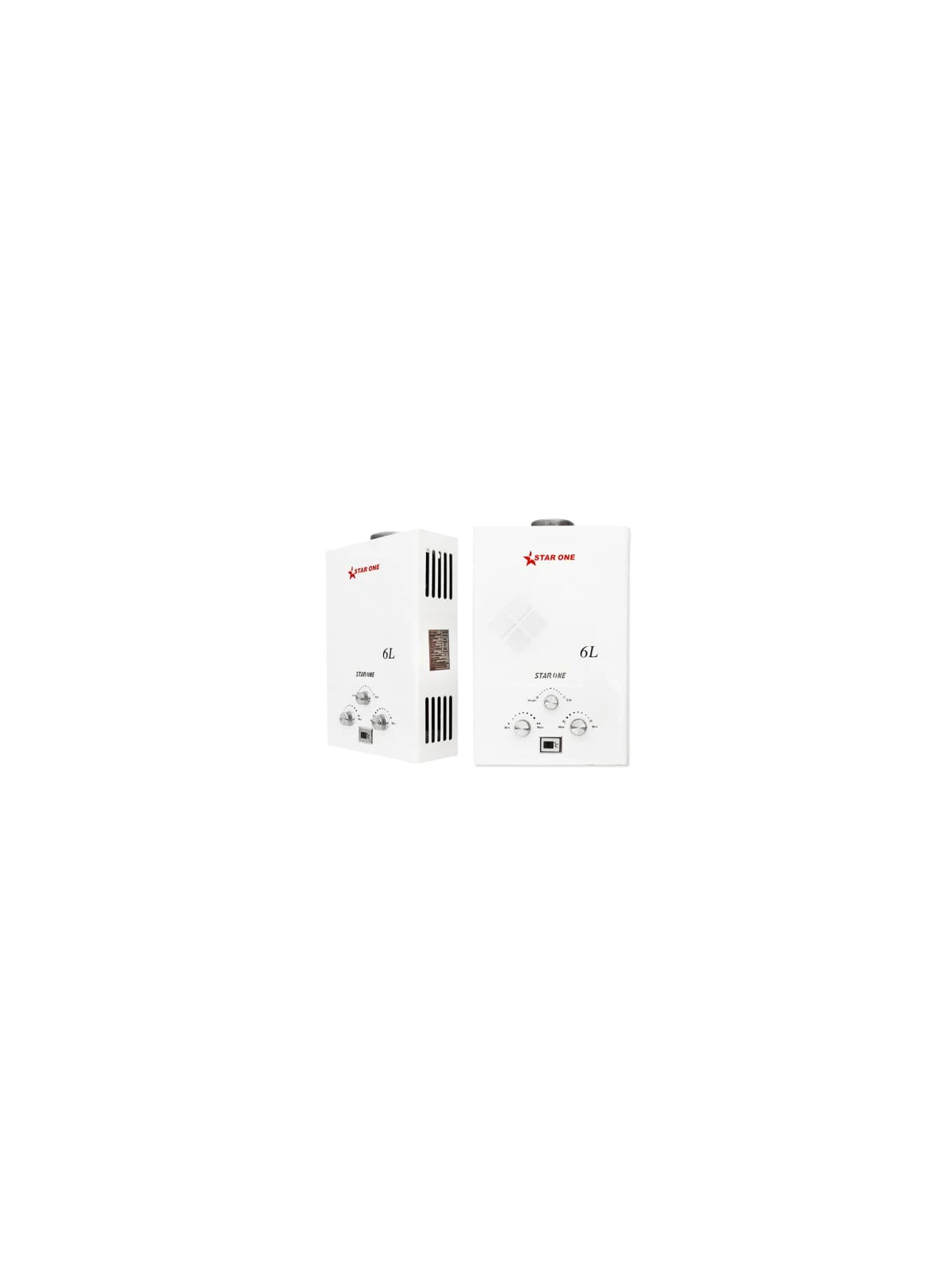 Chauffe Bain 6Litres Automatique STARONE 6L-NG - Type de Gaz : Gaz de ville - Pression de l’eau : 0.02-0.8Mpa - Pression de Gaz : 2800P - Puissance Thermique : 12Kw - Capacité : 6Litres -Système d’allumage : Automatique - Dimension : 44 30 14cm - Poids : 4.5Kg - Couleur : Blanc - Garantie : 1An