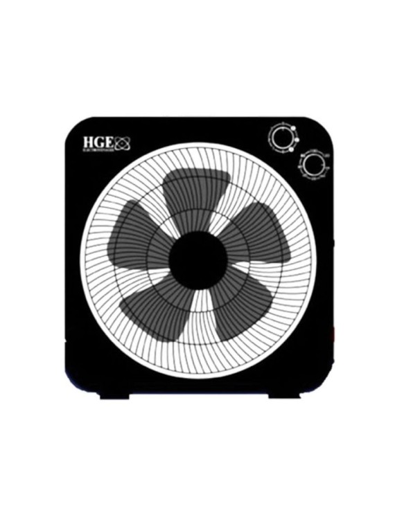 Ventilateur HGE Extra Carré - Puissance : 50W - Nombre de vitesses : 3x Vitesses - Vitesse de Rotation : 1100 tr/min - Avec dispositif de sécurité - Ventilateur avec grille tournante - Température : <= 85°C - Economie d'énergie - Moteur protégé par soi même contre le sur échauffement - Couleur : Noir - Garantie : 1 an