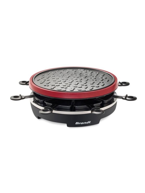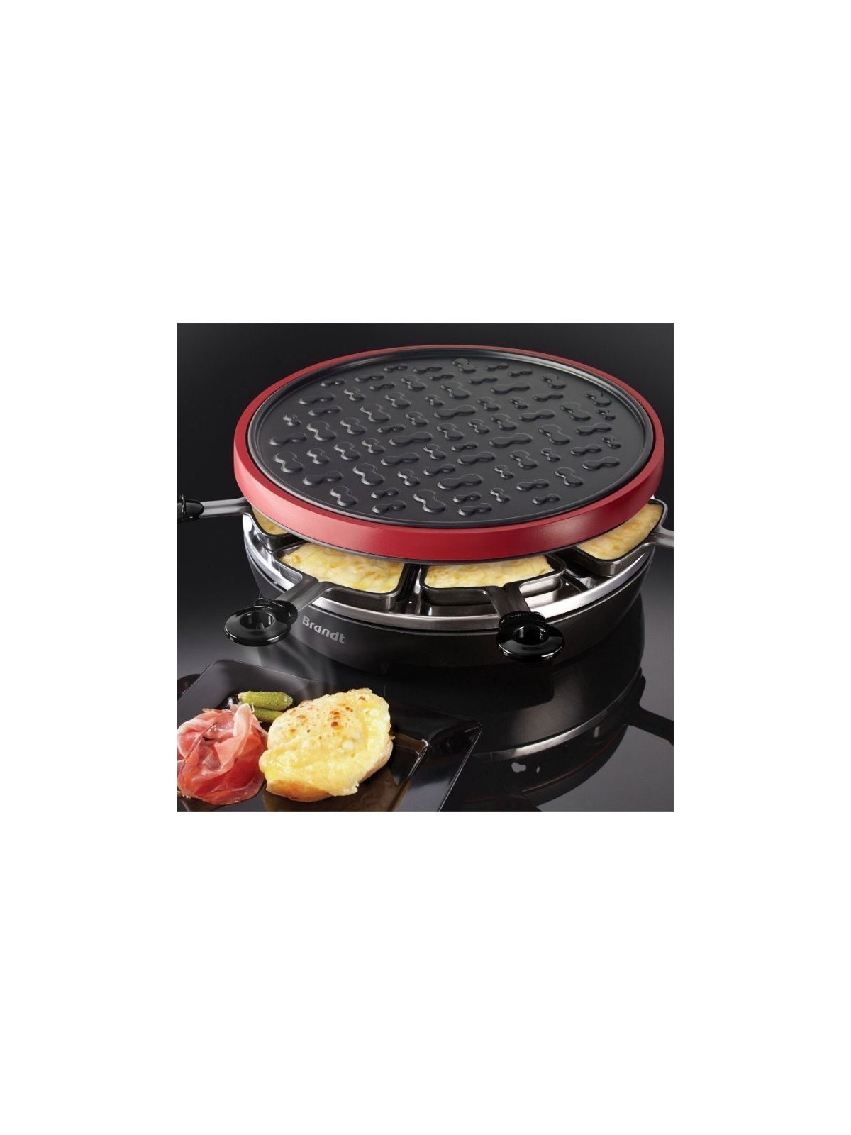 Appareil A Raclette BRANDT - Multifonction: Raclette, Grill - Puissance: 900 watts - Adapte pour 8 personnes - La plaque grill vous permet de saisir vos légumes ou vos viandes pendant que le fromage fond dans les coupelles antiadhésives - Un témoin lumineux indique la mise en fonctionnement - Interrupteur marche/arrêt - Pour un entretien facile, les éléments amovibles sont compatibles lave-vaisselle - Couleur: Noir - Garantie: 1 an