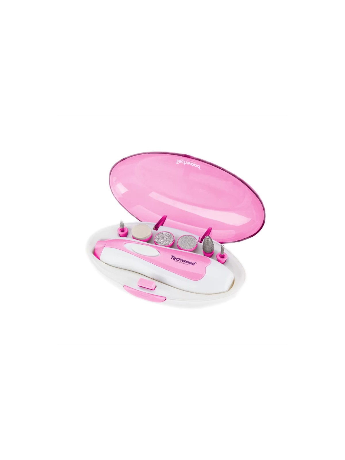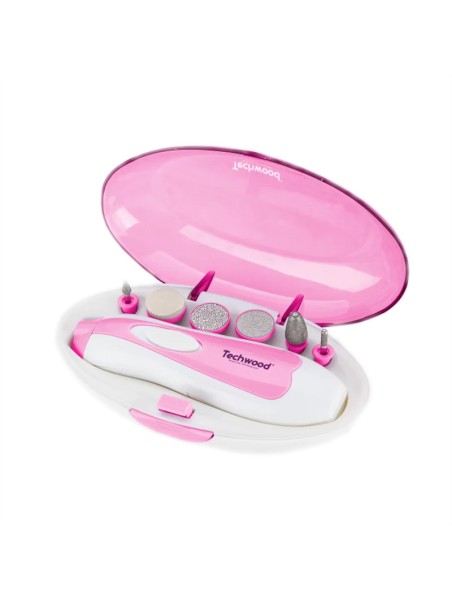 Coffret Manucure De 6 Pièces TECHWOOD - Utilisation: Sans Fil - Râpe électrique rechargeable et trousse manucure pédicure - Tampon roulant à 360° (1 supplémentaire inclus) - Obtenez des pieds doux et beaux en seulement quelques minutes - Design ergonomique - Alimentation : 2 piles LR6 1,5V (non fournies) - Couleur : Rose - Garantie : 1 an