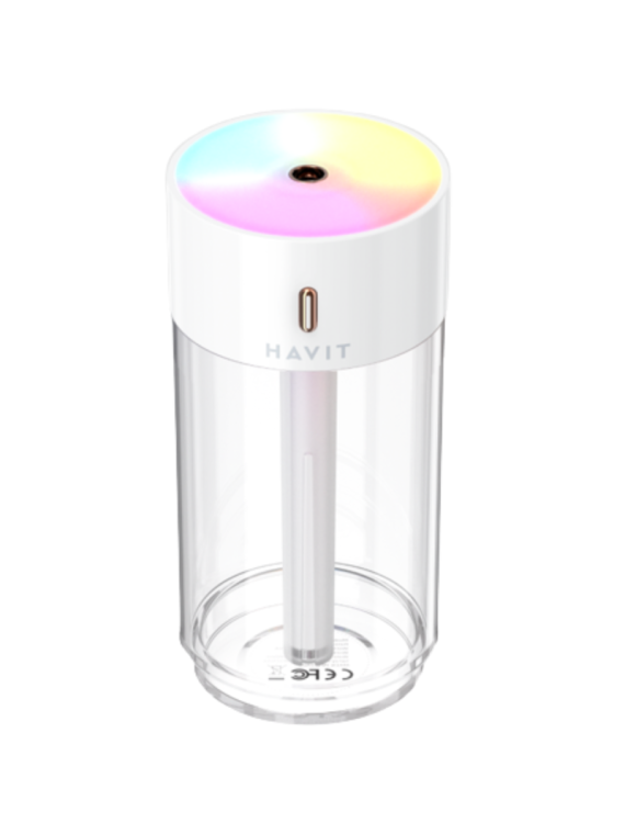 HUMIDIFICATEUR DIFFUSEUR D’AROME LED HAVIT H1351 - Capacité: 35ml – Réservoir d’eau: 280 ml – Alimentation: DC5V - Consommation d’énergie: 2 W - Matériel: ABS + PP ++ slicone + électrique les pièces – Lumière LED – Synchronisation: pulvérisation intermittente 10 heures - Couleur Blanc - Garantie 1 an