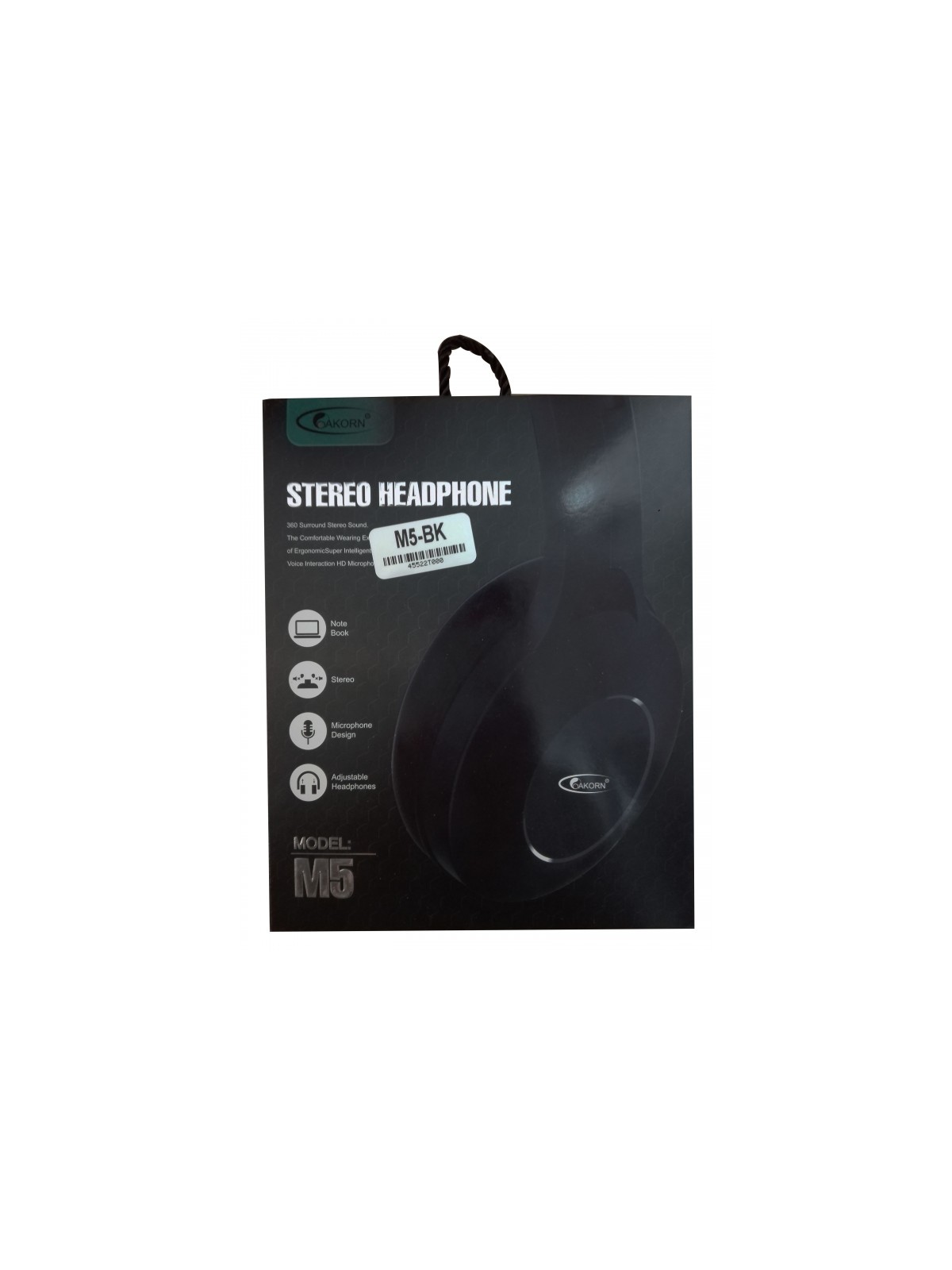 Casque avec Micro OAKORN M5 - Impédance: 32 Ohm - Réponse en fréquence: 20Hz-20KHz - Sensibilité: 108 dB - Sensibilité micro: -38 dB +/- 5 dB - Longueur du câble: 1.2 m - Interface: Jack 3.5 mm - Couleur: Noir