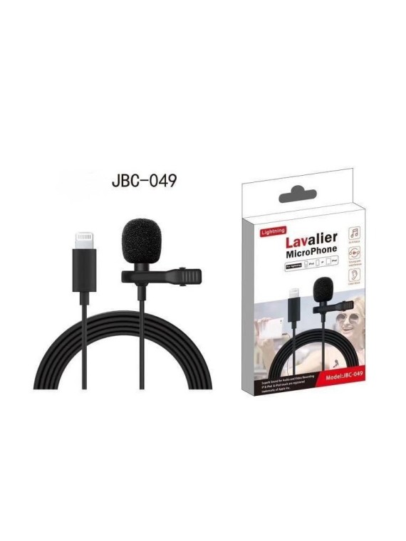 Microphone filaire Lavalier - Connectivité : Filaire - Interface : Lightning - Niveau de bruit : 30 dB - Gamme de fréquences : 20 Hz - 16 kHz - Réduction du bruit - Prise omnidirectionnelle à 360° - Voix authentique et claire - Compatibilité : Large gamme d’appareils (smartphones, PC, etc) - Couleur : Noir
