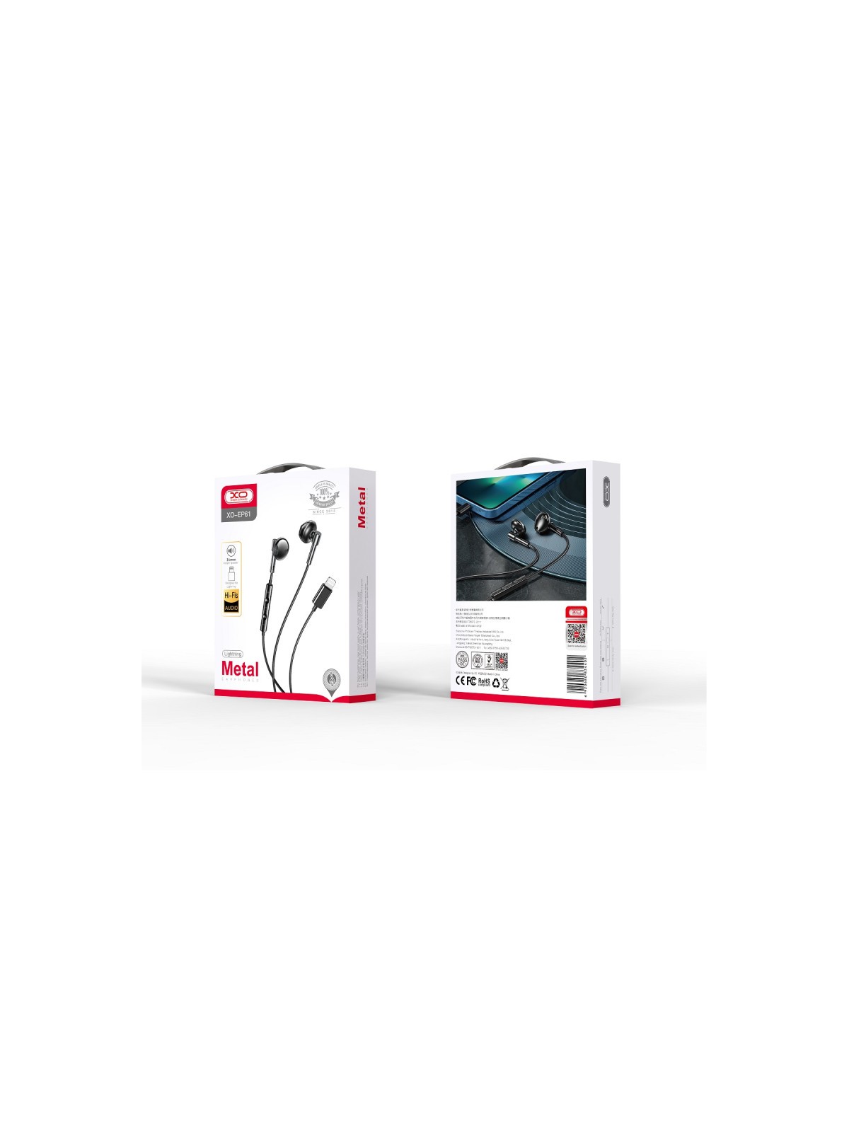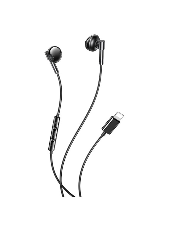 Écouteurs filaires XO EP61 - Connecteur : Lightning - Microphone intégré - Taille du haut-parleur 14 mm - Impédance : 32 ohms - Sensibilité : 96±3dB - fréquence : 20 Hz - 20 kHz - Boutons de contrôle : Lecture/pause, répondre/terminer les appels, changer de chanson - Longueur du câble : 1,2 m - Couleur Noir