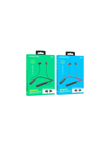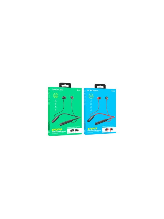 Écouteurs Bluetooth BOROFONE BE56 - Sans Fil - Capacité de batterie: 200mAh - Autonomie : 15 heures de musique/appels et 200 heures en veille - Temps de charge: environ 1 heure - Matériau : ABS + silicone - Bluetooth 5.0 - Longueur du câble : 84 cm - Poids : 28g