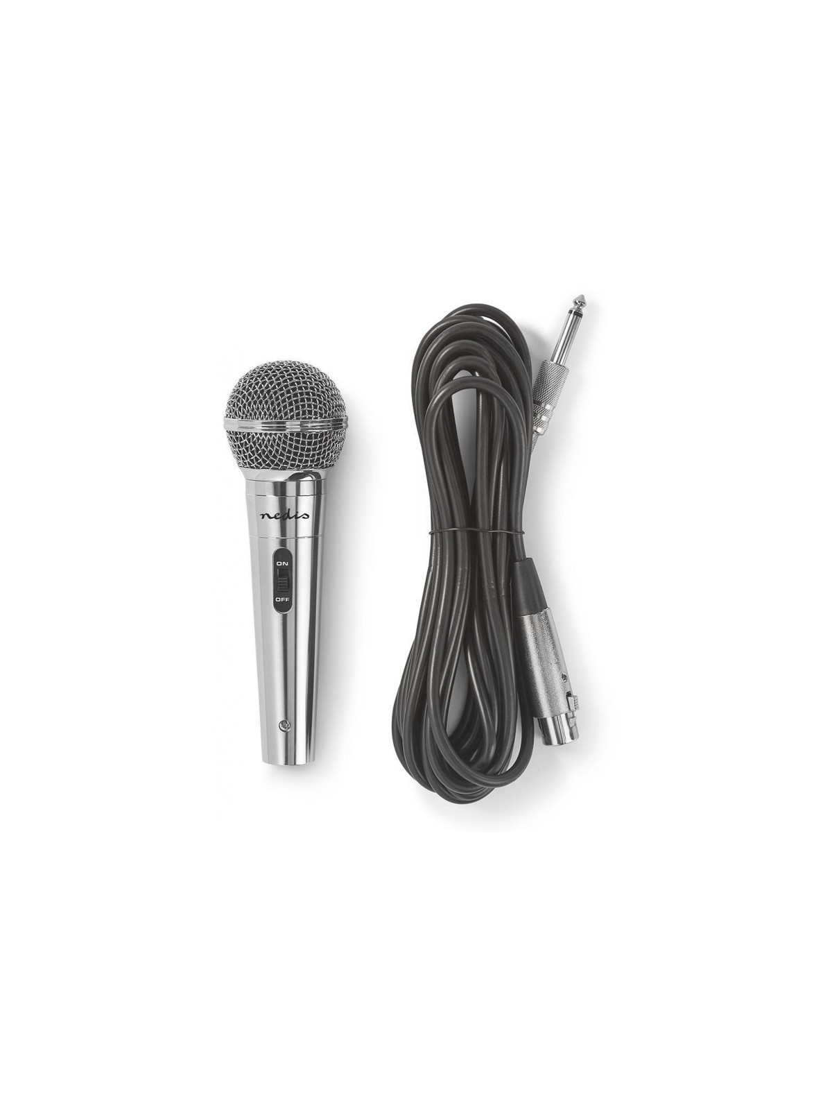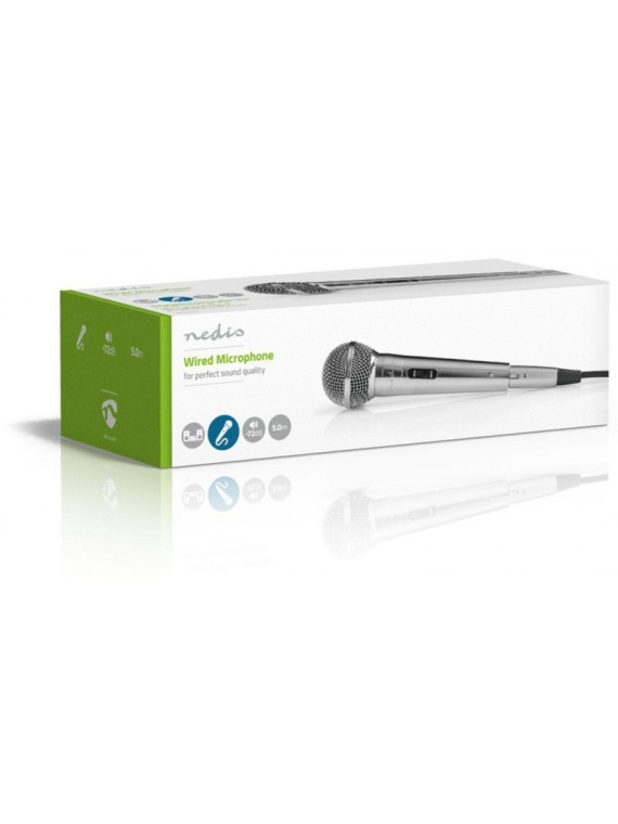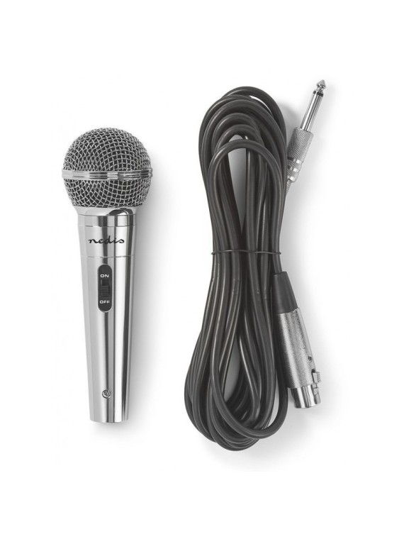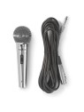 Microphone Filaire Nedis MPWD45GY - Impédance: 600 Ohm - Réponse en fréquence: 80Hz-13KHz - Sensibilité: -72 dB - Bouton marche/arrêt intégré - Sortie de connexions: 1x 6.35mm - Matériau: Metal - Longueur du cordon: 5.0 m - Couleur Argent - Garantie 1 an