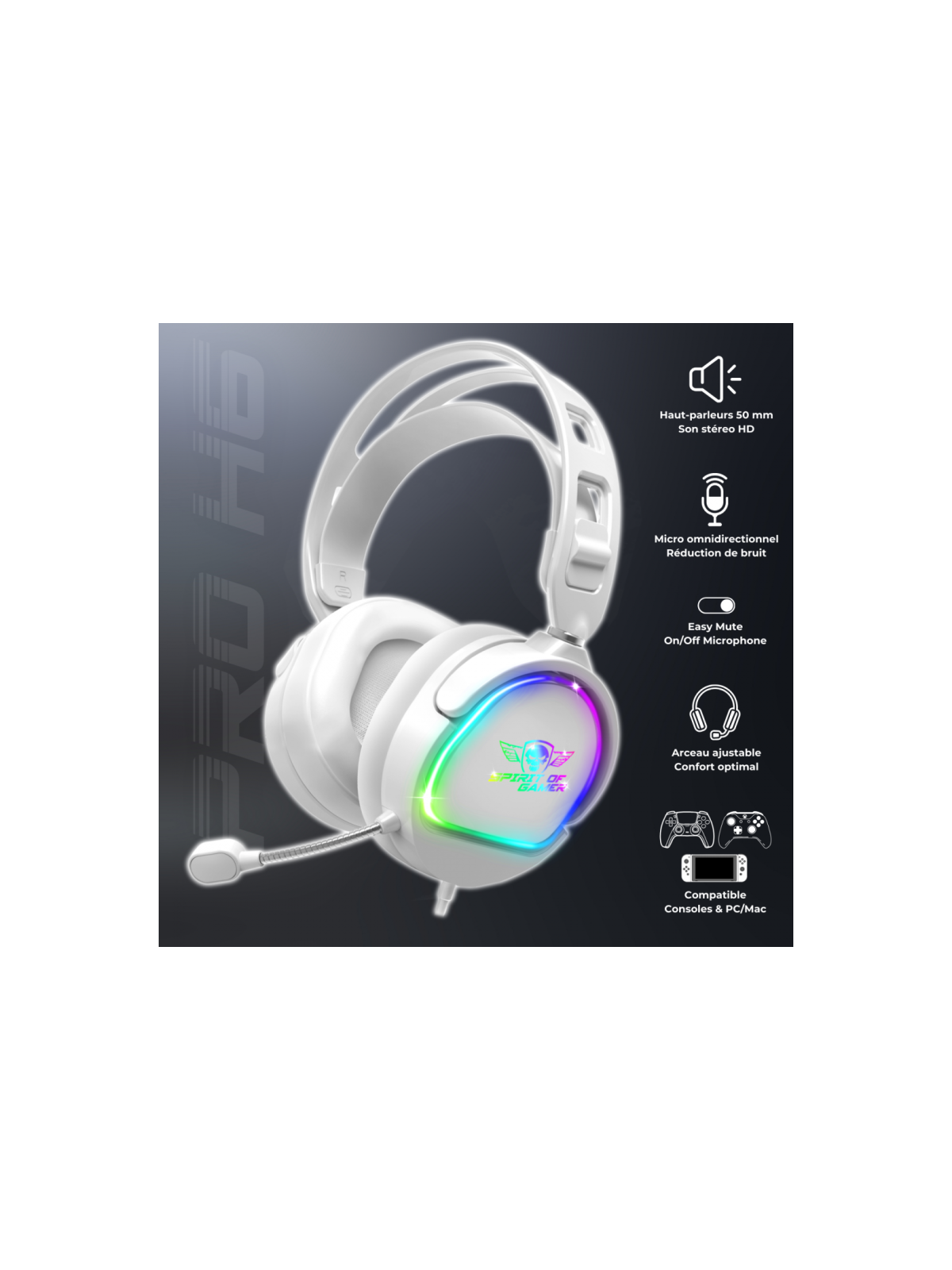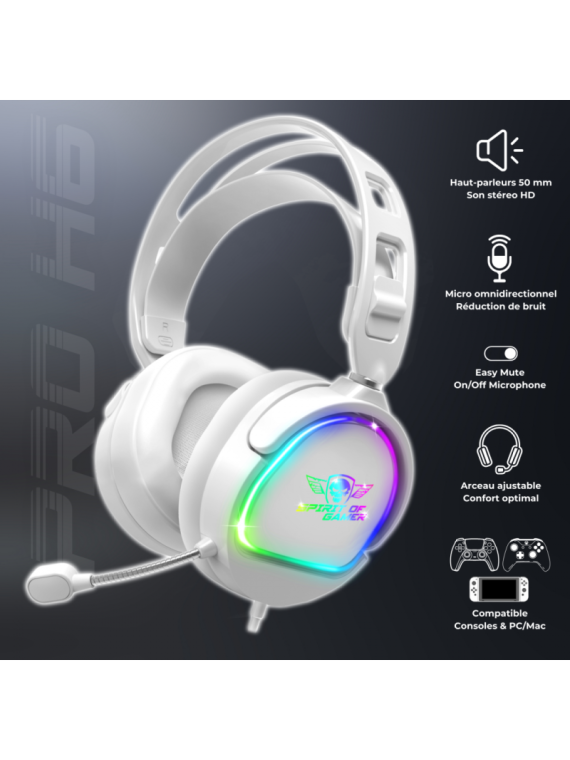 Casque Micro Gaming Spirit of Gamer PRO-H6 ARTIC / RGB / Blanc
