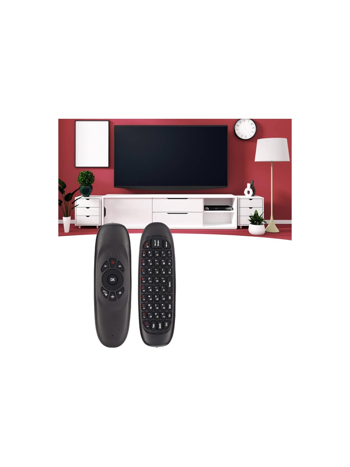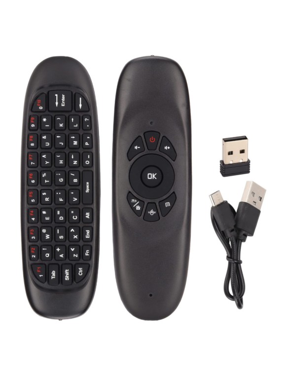 Télécommande sans fil Air mouse avec Clavier - Compatible avec Android TV Box/PC/Smart TV/projecteur/HTPC - Connectivité sans fil 2.4 Ghz - avec Batterie Li-ion rechargeable - Dimensions: Environ 151 x 45 x 14 mm - Garantie 1 an