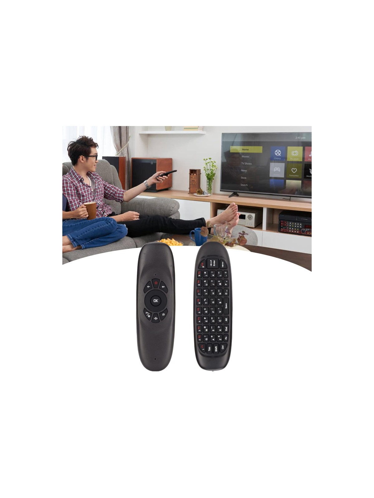 Télécommande sans fil Air mouse avec Clavier - Compatible avec Android TV Box/PC/Smart TV/projecteur/HTPC - Connectivité sans fil 2.4 Ghz - avec Batterie Li-ion rechargeable - Dimensions: Environ 151 x 45 x 14 mm - Garantie 1 an