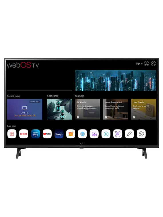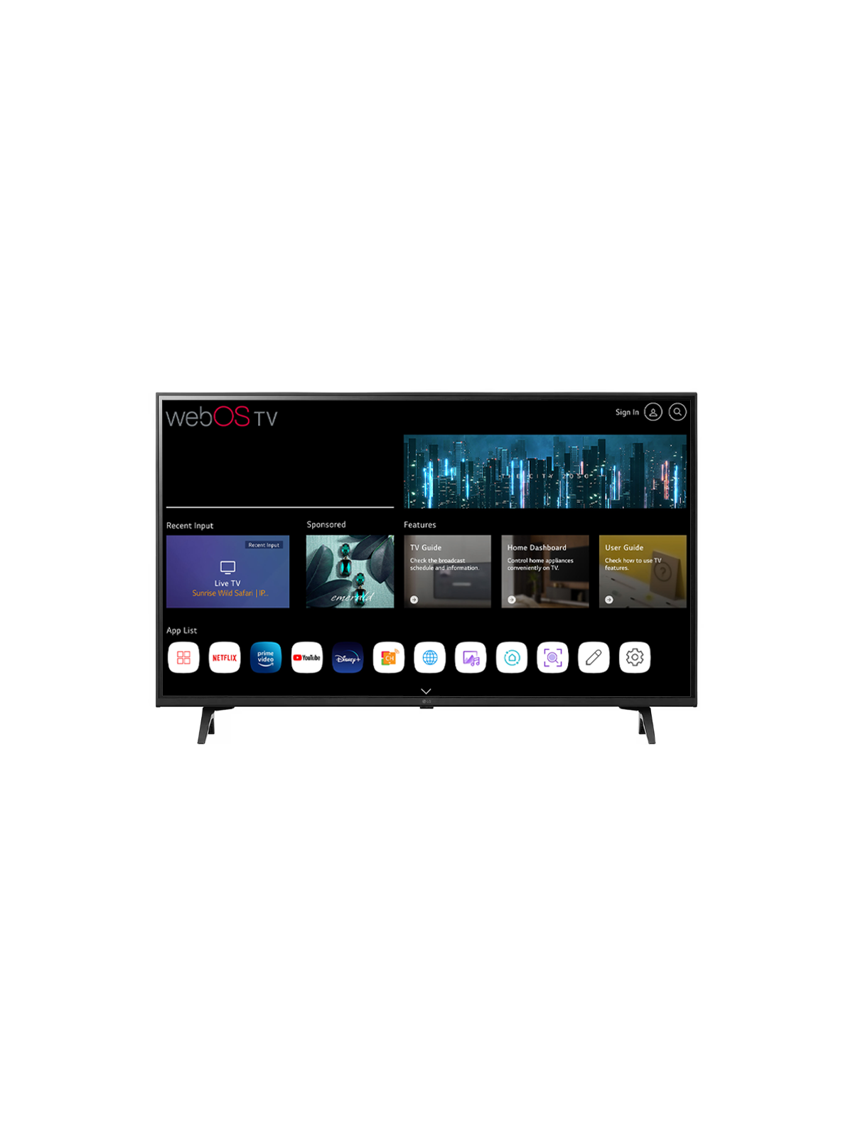 Téléviseur LG 50" Smart - Résolution : 3840 x 2160 Pixels 4K Ultra HD - Système d'exploitation : webOS 24 - Processeur d'image : Processeur α5 AI 4K Gen7 - Taux de rafraichissement : 50Hz Natif - HDR : HDR10 / HLG - AI Sound Pro (Virtualisation 9.1.2) - Synchronisation du son LG - Sortie Audio : 20W - Diffusion haut-parleurs : 2.0 canaux - Rétroéclairage Direct LED - Etalonnage automatique - Navigateur Internet - Contrôle de la luminosité par l'IA - MODE CINÉMA™ - Optimiseur de Jeu - Application Smartphone : LG ThinQ - Reconnaissance vocale intelligente - Connectivité : WiFi 5, Bluetooth 5.0 - Connecteurs : 3x HDMI, 2x USB 2.0, 1x RJ45, 1x Sortie audio, 2x entrée RF - Poids Net : 11.7Kg - Dimensions (LxLxH) : 1121 x 651 x 57,1 mm (Sans Pied), 1121 x 713 x 231mm (avec pied) - Garantie 2ans