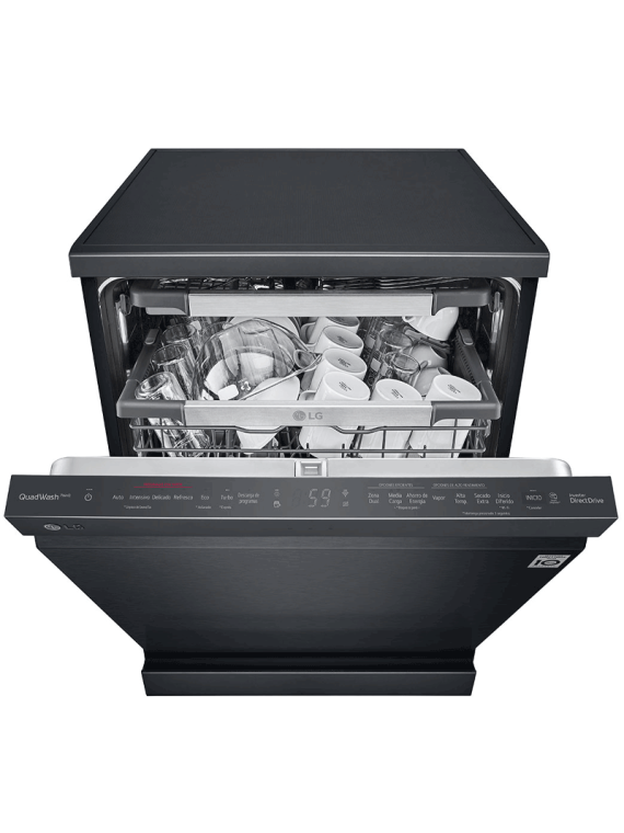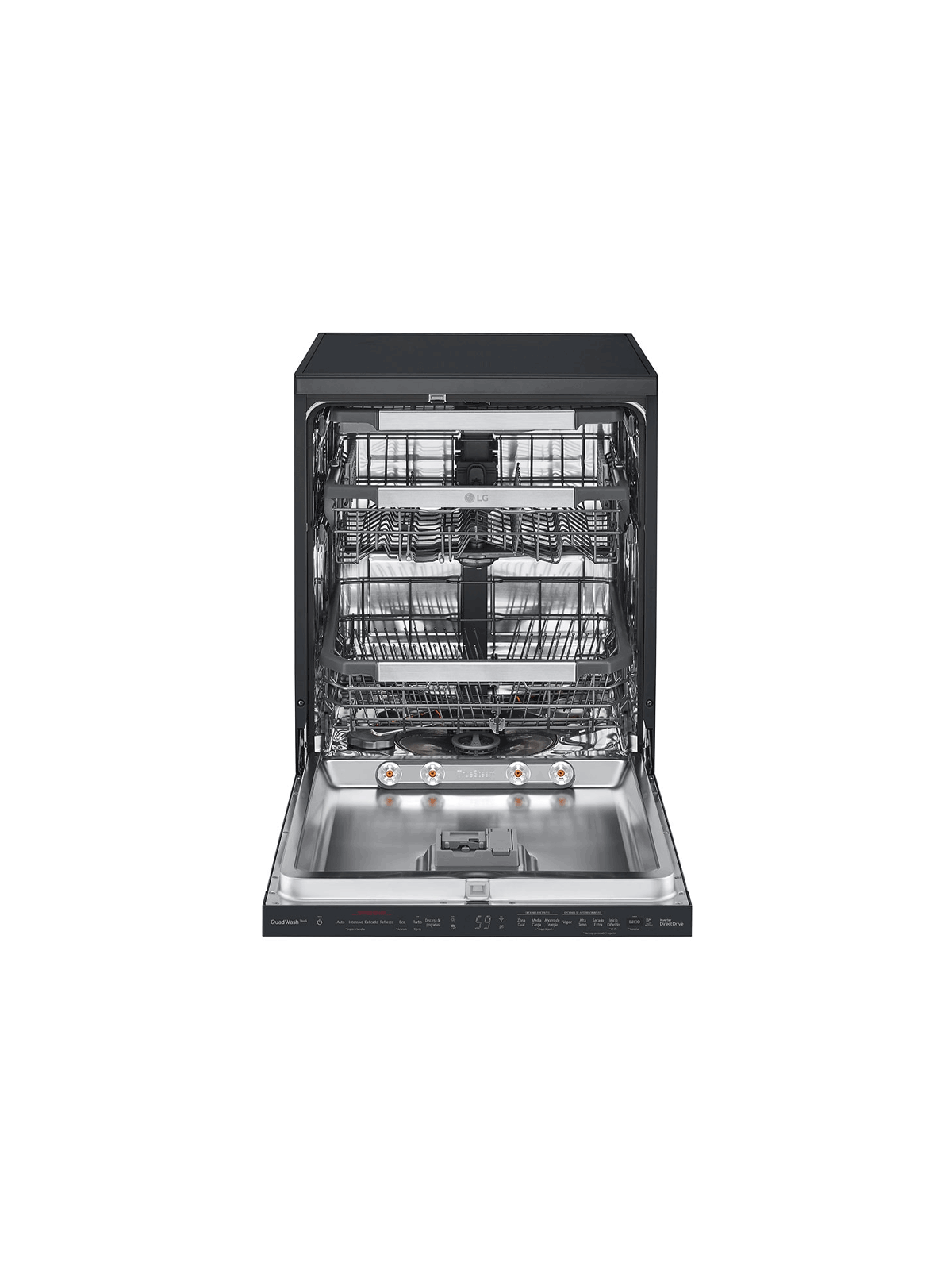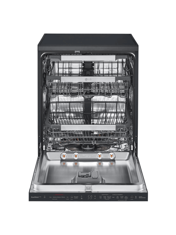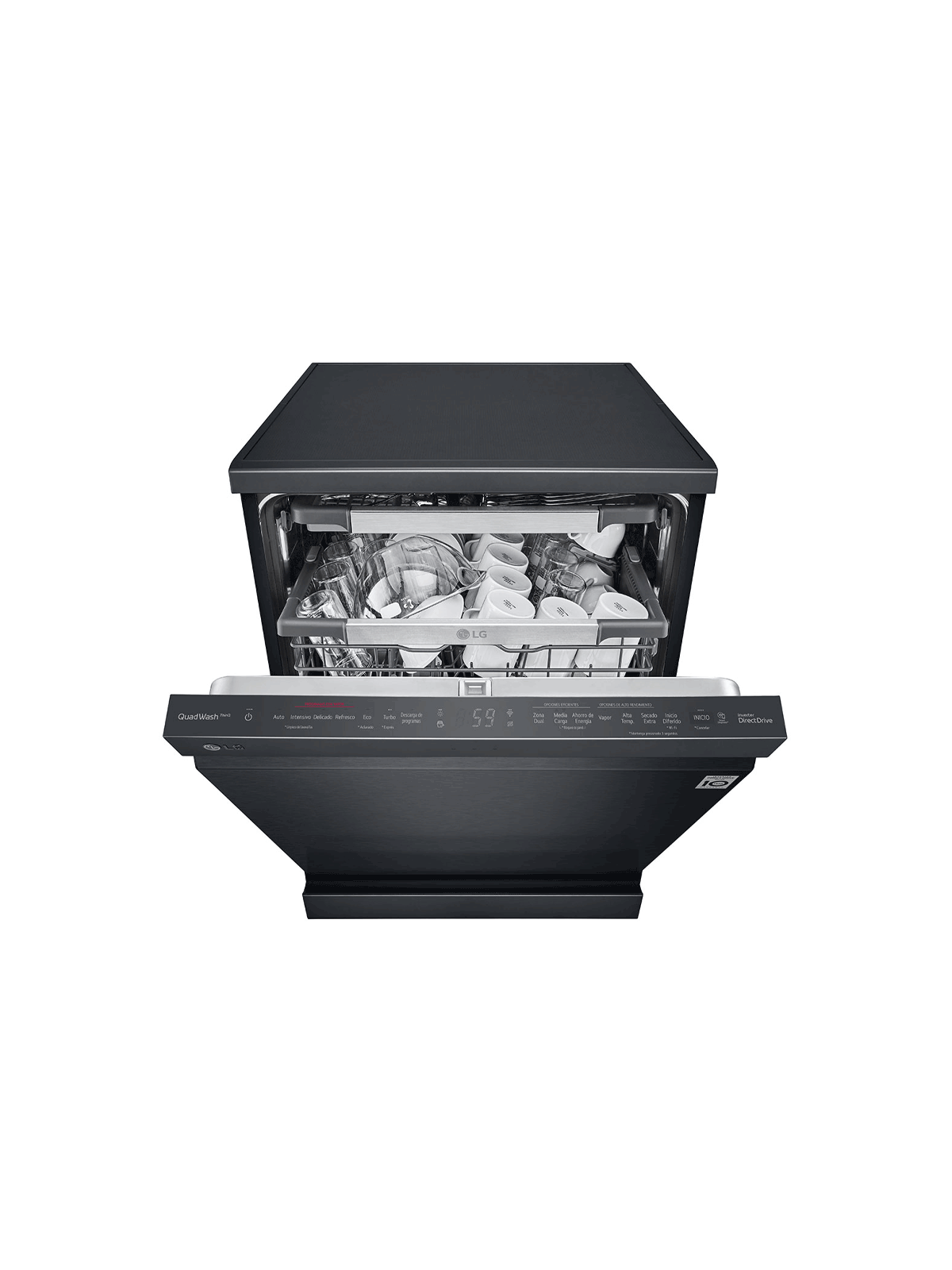 Lave Vaisselle LG - Nombre de couverts : 14 Couverts - Nombre de programmes : 8 Programmes - TrueSteam laisse les plats étincelants de propreté tout en réduisant les taches d'eau jusqu'à 30% - ThinQ - Smart Diagnosis - Troisième étagère réglable en hauteur - Niveau Sonore : 41dB - Dimensions (LxHxP) : 598 x 845 x 600mm - Couleur : Noir - Garantie 2ans