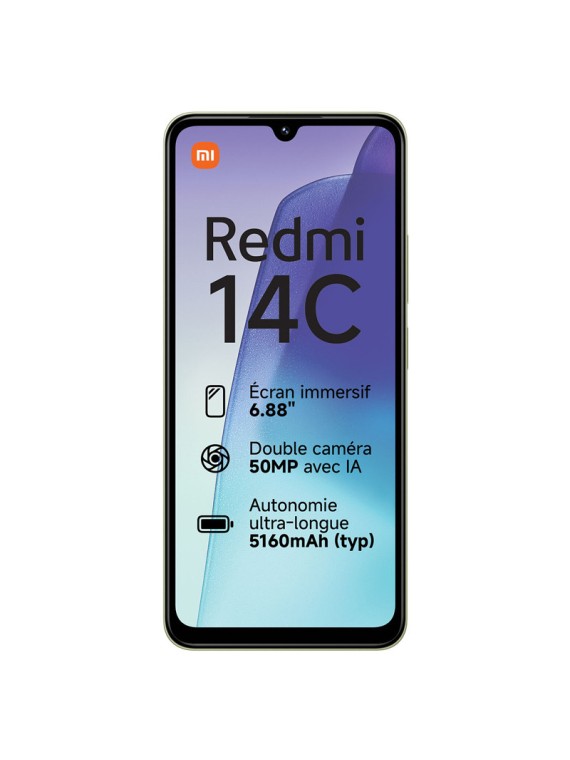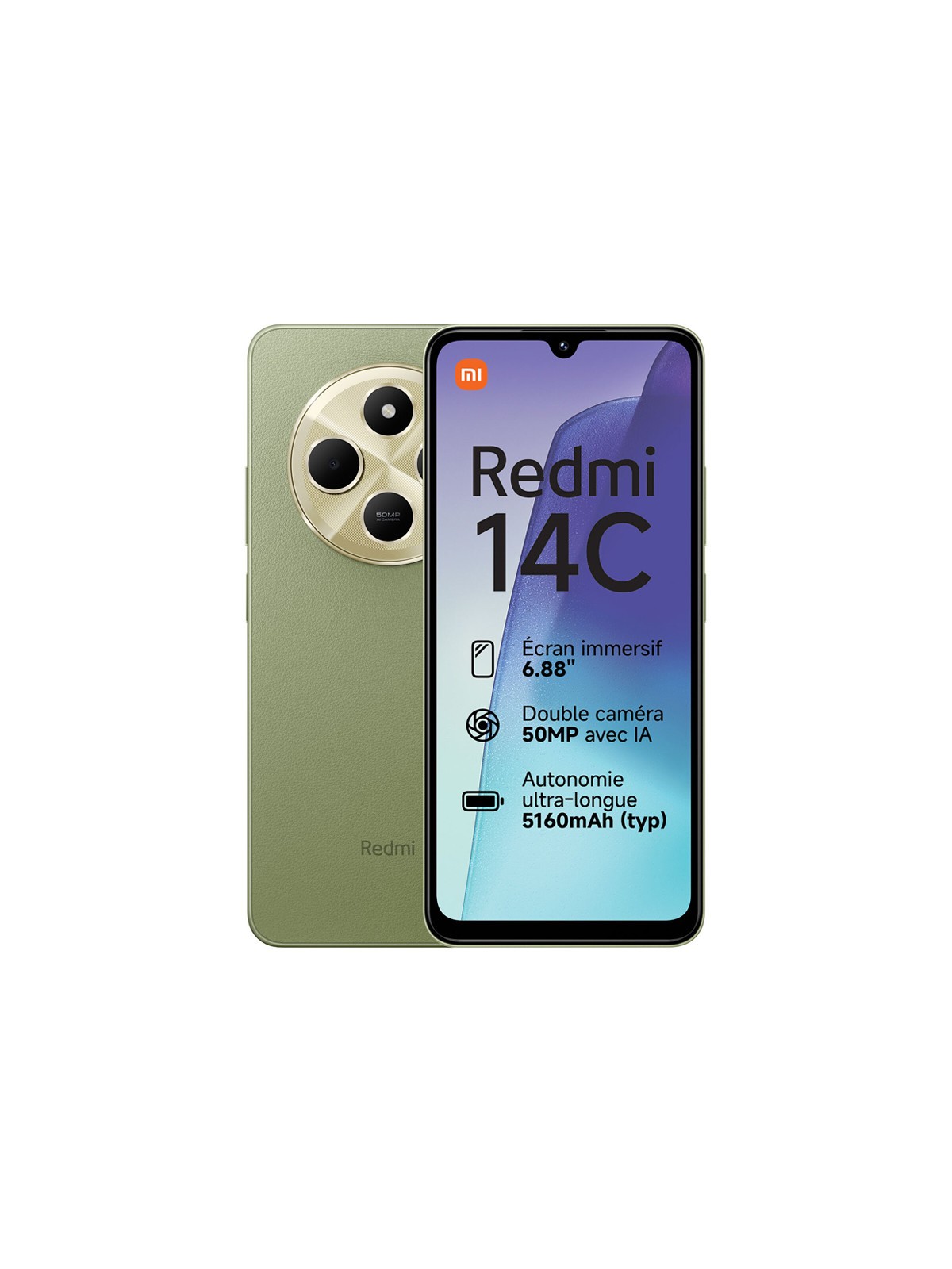 Double SIM - Écran Dot Drop de 6.88" verre Corning Gorilla - Taux de rafraîchissement : 120 Hz - Processeur : MediaTek Helio G81-Ultra Octa-Core - Système d'exploitation : Android 14,HyperOS - RAM : 4Go - Mémoire 128Go - Appareil photo principal 50MP - Caméra frontale 13MP - Capteur d'empreintes digitales latéral - Déverrouillage du visage par l'IA - Wi-Fi - Bluetooth5.3 - Prise casque 3.5 mm - Batterie 5160 mAh - Charge rapide 18W - Couleur : Vert - Garantie 1 an