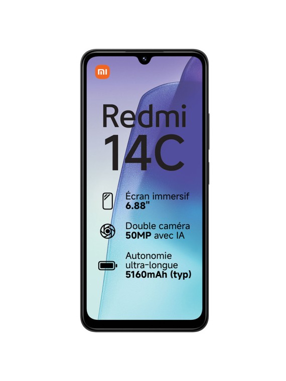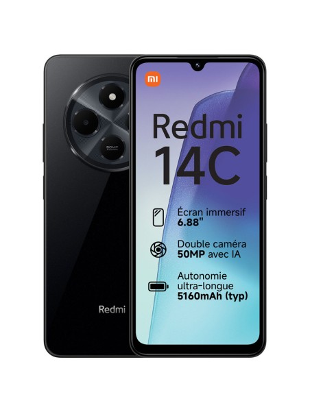 Double SIM - Écran Dot Drop de 6.88" verre Corning Gorilla - Taux de rafraîchissement : 120 Hz - Processeur : MediaTek Helio G81-Ultra Octa-Core - Système d'exploitation : Android 14,HyperOS - RAM : 4Go - Mémoire 128Go - Appareil photo principal 50MP - Caméra frontale 13MP - Capteur d'empreintes digitales latéral - Déverrouillage du visage par l'IA - Wi-Fi - Bluetooth5.3 - Prise casque 3.5 mm - Batterie 5160 mAh - Charge rapide 18W - Couleur : Noir - Garantie 1 an