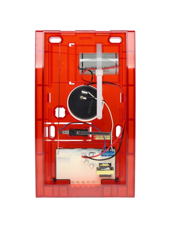 Sirène extérieure avec alimentation de secours Satel SP-4006R - signalisation sonore : transducteur piézoélectrique - signalisation optique : voyants LED - protection intérieure métallique - autoprotection : à l’arrachement, à l’ouverture - autoalimentée par batterie au plomb inclus - Classe environnementale III - Volume du son: 120 dB - Consommation de courant en veille: 40 mA - Garantie 1 an