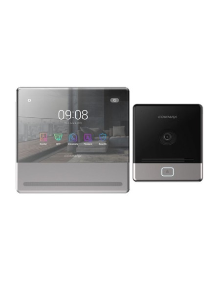 KIT VIDÉOPHONE COMMAX CDV-70QT + DOOR CAMÉRA DRC- 40QH - Grand écran 7" (HD haute résolution/écran tactile) - Répondez aux appels vidéo et ouvrez les portes via l'application mobile - Connectivité Cloud de base Wi-Fi - Enregistrer des images par détection de mouvement - Emplacement pour carte SD de 128 Go - Design moderne et élégant - Couleur Argent - Garantie 1 an