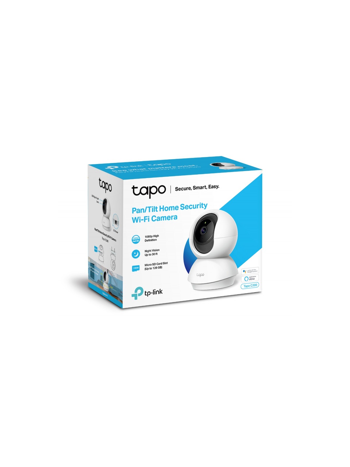 Caméra de surveillance tp-link Tapo C200 / WiFi / panoramique et inclinable / Indoor - Sécurité 128 bit AES encryption with SSL/TLS - Taux WiFi 11Mbps(802.11b) / 54Mbps(802.11g) / 150Mbps(802.11n) - Fréquence 2.4 GHz - NOTIFICATIONS : Déclencheur d'entrée - Compression Vidéo H.264 - Fréquence d'image 15fps - Streaming Vidéo 1080p - Système Requis iOS 9+, Android 4.4+ - Capteur d'image 1/2.9“ - Vision Nocturne 850 nm IR LED up to 9 meters - Champ de vision 360° horizontal, 114° vertical - microphone et haut-parleur intégrés - Dimensions: 86.6 x 85 x 117.7 mm - Garantie 1 an