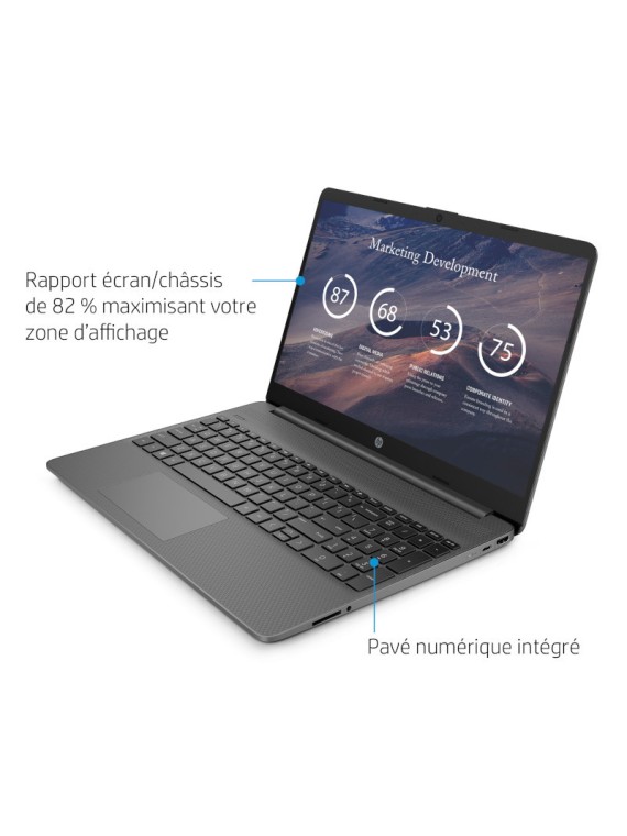 Écran Full HD 15.6" (1920 x 1080 px ) antireflet - Processeur Intel Celeron N100, up to 3.4 GHz, 6 Mo de mémoire Cache - Mémoire 8 Go - Disque SSD 256 Go SSD M.2, PCIe NVMe - Carte Graphique Intel UHD Graphics - Wi-Fi 6 - Bluetooth 5.3 - Caméra HP True Vision HD 720p - Doubles haut-parleurs - Clavier avec pavé numérique - 1x USB-C - 2x USB Type A - HDMI 1.4b - 1x Prise Jack - Couleur Gris ardoise - Windows 11 - Garantie 1 an Avec SACOCHE Offerte