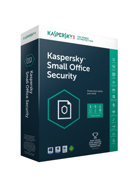 Kaspersky Small Office Security / 20 Pcs + 2 serveurs - Protège les Pcs de bureau et Pc portables Windows / Pcs de bureau et Pcs portables Mac / Serveurs de fichiers Windows / Smartphones et tablettes Android - Blocage des cryptolockers - Navigation Web et messagerie sécurisées - Optimisé pour la performance