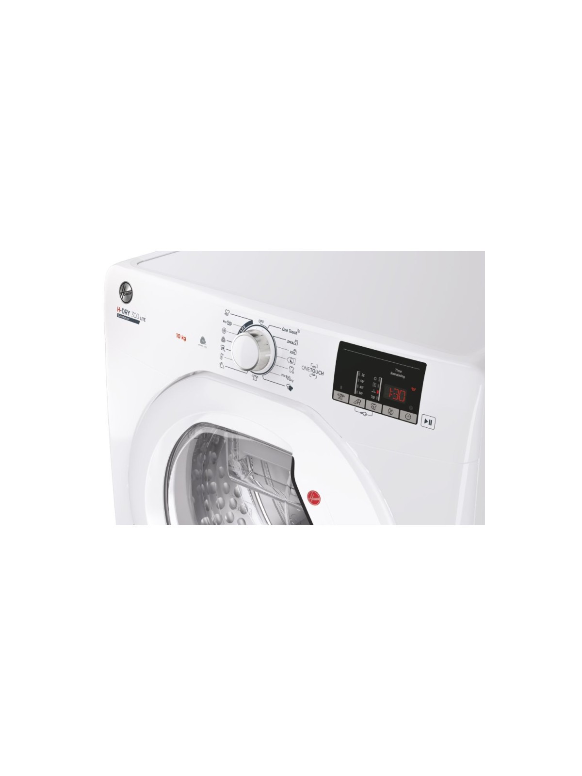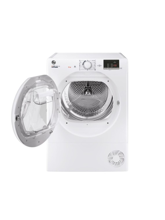Sèche linge Hoover HLEC10DE-80 - Capacité 10 Kg - Classe énergétique B - Volume du tambour : Tambour 125 L - Nombre de programmes 15+1 - Indicateur de fin de cycle - Niveau sonore : 68 dBA - Tension : 220-240 V - NFC - Pieds réglables - Dimensions : 850 x 596 x 585mm - Poids net 34.8 Kg - Couleur : blanc - Garantie 2 ans ( + 10 ans de Garantie sur le moteur )