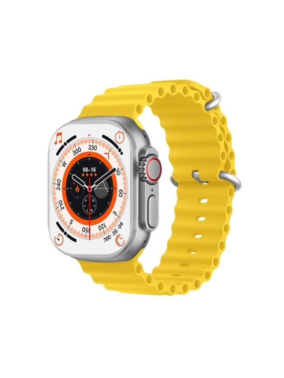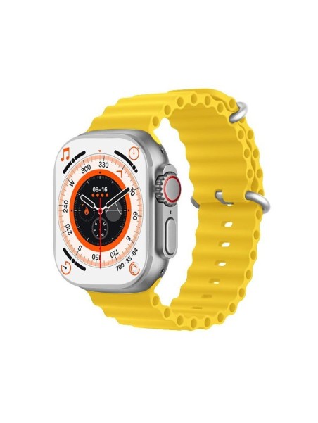 Montre Connectée T800 Ultra 2 - Connectivité : Bluetooth 5.0 - écran HD 1.99" - Rappel de message - Fonction de surveillance de la santé en temps réel - Fréquence cardiaque - Capacité de batterie : 320mah - Autonomie : 5-7 jours - Résistance à l'eau: IP67 -Matériau : Corps : alliage de zinc + ABS, sangle : silicone - Couleur : Jaune - Garantie 1an