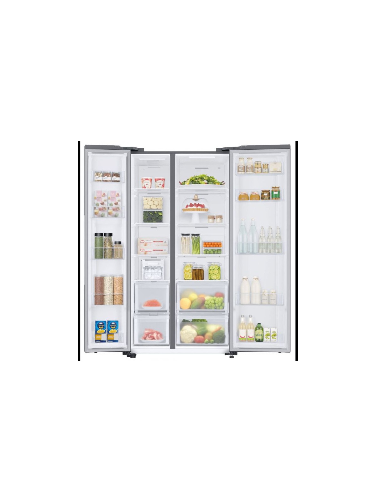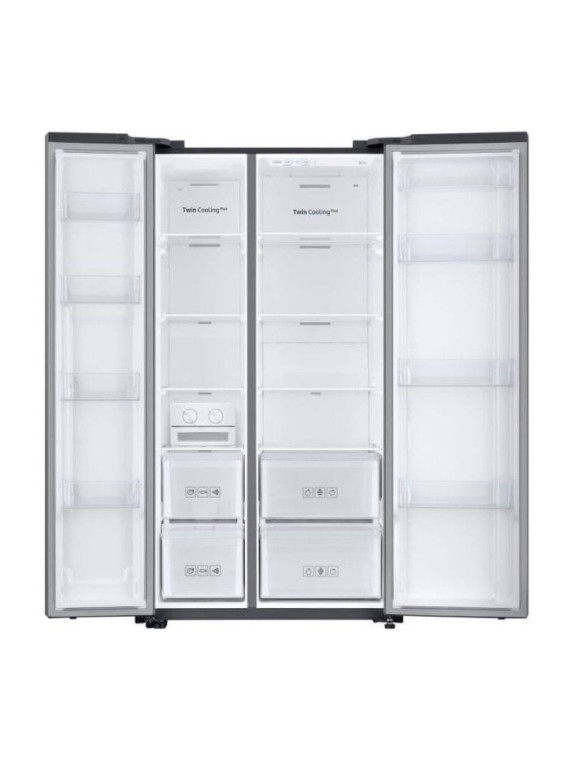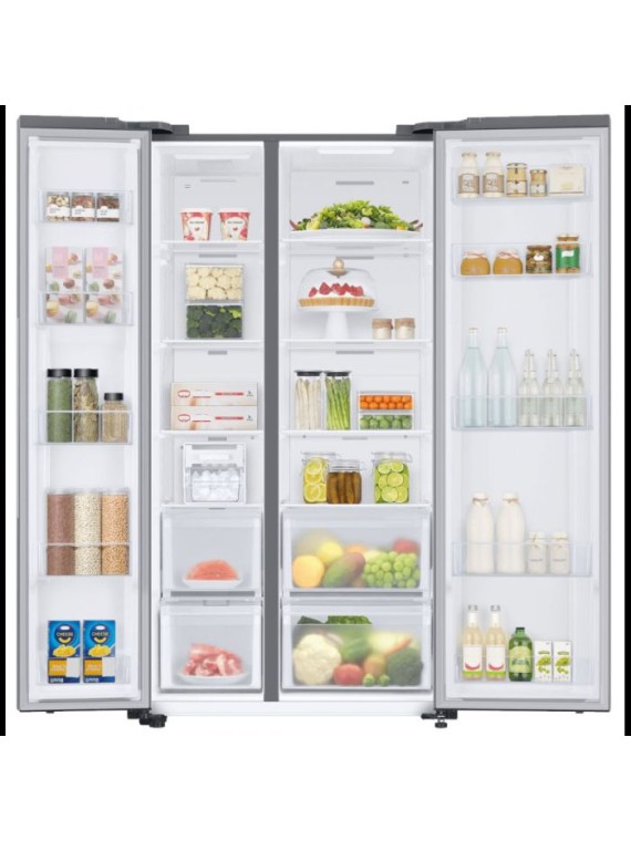 Réfrigérateur Side By Side SAMSUNG - 2 Portes - Système de refroidissement: NoFrost - Volume Brut: 670 Litres - Capacité brut réfrigérateur: 415 Litres - Capacité brut congélateur: 255 Litres - Volume Net: 641 Litres - Capacité net réfrigérateur: 403 Litres - Capacité net congélateur: 238 Litres - Classe Energétique: A++ - Consommation énergétique par an: 419 kWh - Niveau Sonore: 36 dBA - Eclairage intérieur LED - R600a - Technologie Twin Cooling - Compresseur: Digital Inverter - Froid ventilé - Multi flux - Fonction réfrigération rapide - R600a - Alarme sonore porte ouverte - Casier à œufs - 2 x tiroirs fruits & légumes - 4 x clayettes - 5 x logement de porte - Dimensions: H x L x P: 178 x 91.2 x 71.6 cm - Poids: 112 kg - Garantie: 3 ans + 20 ans sur moteur