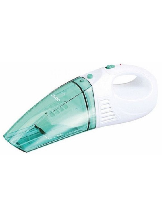 Aspirateur à main eau et poussières LIVOO DOH109B - Puissance 45 W - Autonomie de 15 à 20 minutes pour un chargement de 12 à 16 heures - Filtre permanent démontable et lavable - Pour eau et poussières - Livré avec 3 accessoires : un support mural, un embout suceur avec brosse et un embout raclette pour liquide - Indicateur lumineux de charge - Sans fil - Réservoir de 150 ml pour l’eau et 550 ml pour la poussière - Couleur Vert - Garantie 1 an