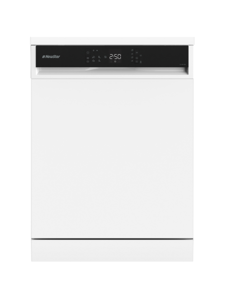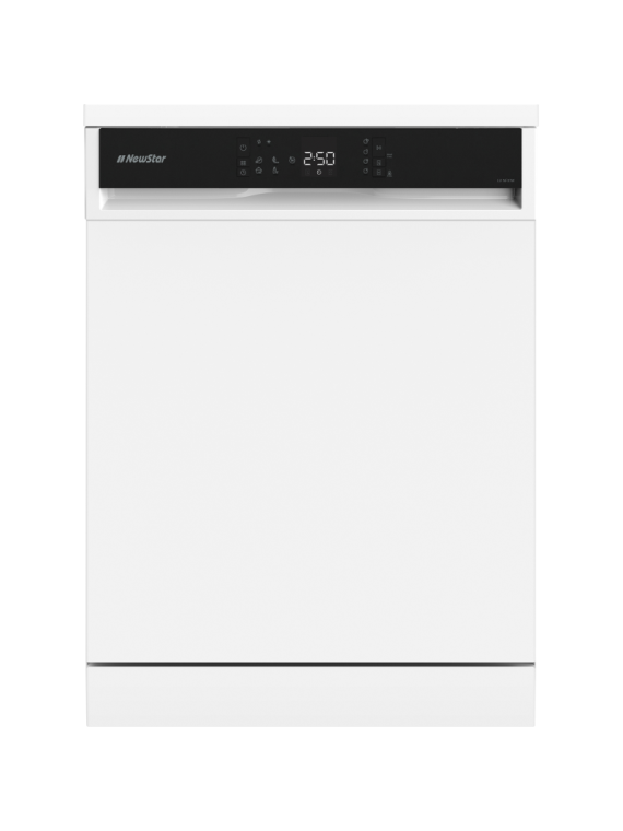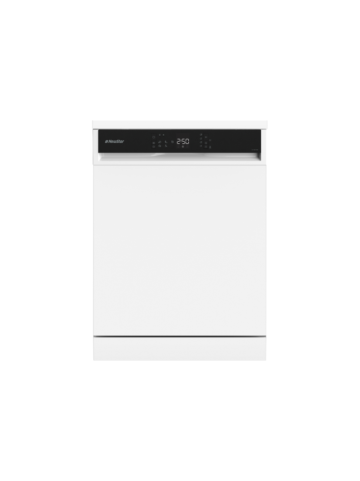 Lave vaisselle Newstar 12 Couverts avec afficheur - Nombre de couvert : 12 - Alimentation 220 - 240 / 50Hz - Dimension (HxLxP) : 85 x 59,8 x 59,8 cm - Fonctionnalités : Lavage + séchage - Nombre de programmes : 5 - Nombre de paniers : 3 - Couleur Blanc - Garantie 1 an