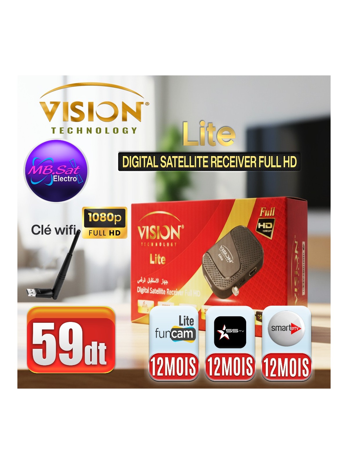 Récepteur VISION LITE Full HD 1080P - Résolution: Full HD 1080 - Connectivité: Wifi - HDMI - USB 2.0 - HDTV - YouTube -